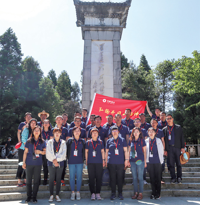 2021年中旅酒店在距離永新不到50公里的地方開展黨史學(xué)習(xí)教育。圖為員工作者赴井岡山學(xué)習(xí)時(shí)拍攝