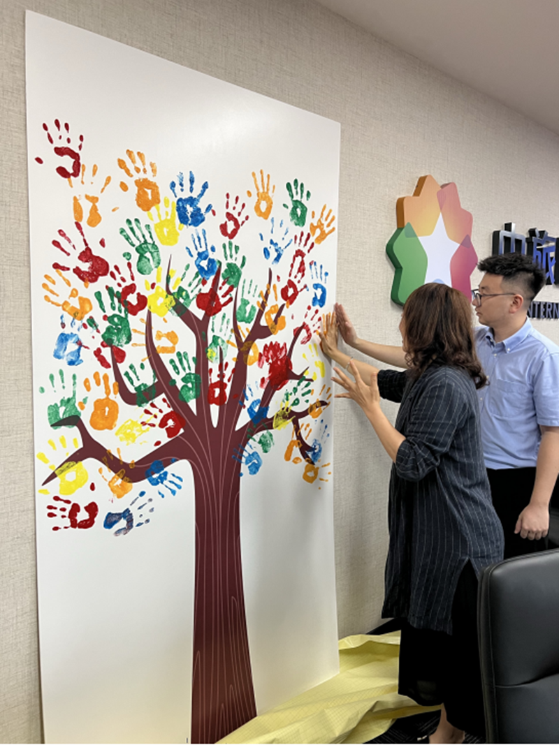 中旅國際總部聯(lián)合各級企業(yè)開展主題為“百年華誕同慶賀 同心共筑百年樹”慶?;顒?,參觀集團百年歷史圖片展,組織“同心共筑百年樹”共創(chuàng)活動,職工代表用涂滿顏料的雙手,共同繪就集團大樹的枝繁葉茂,為百年華誕獻禮。