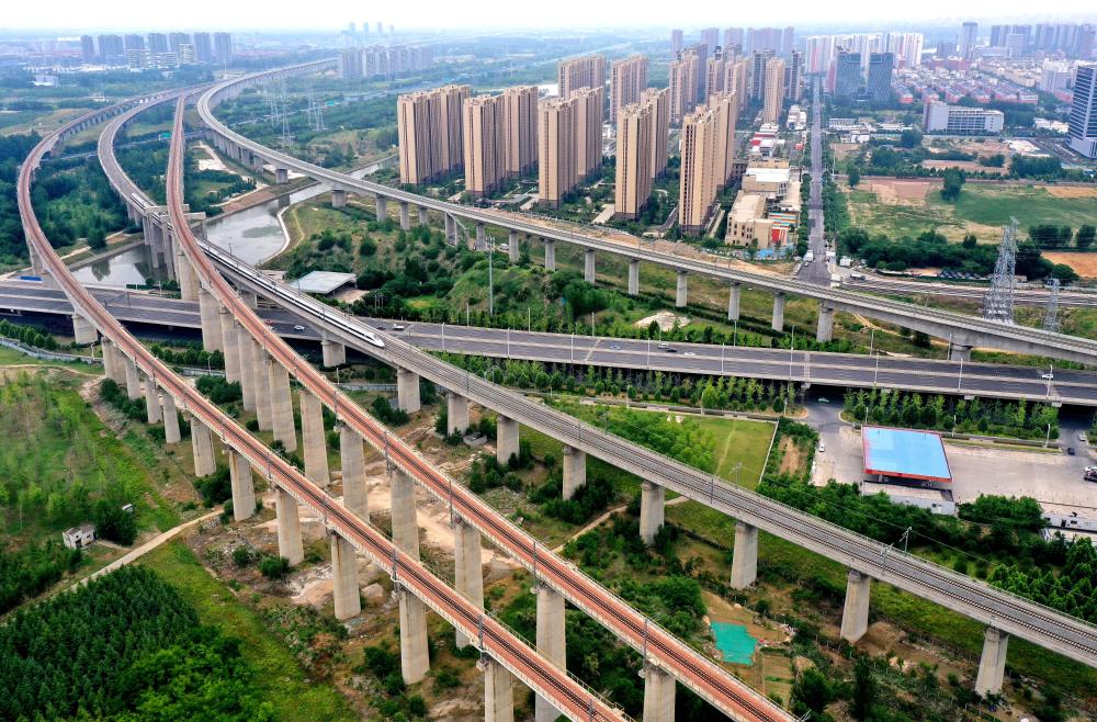 ??2024年5月30日,一列動車組列車行駛在鄭州東站附近的線路上。(新華社發(fā))