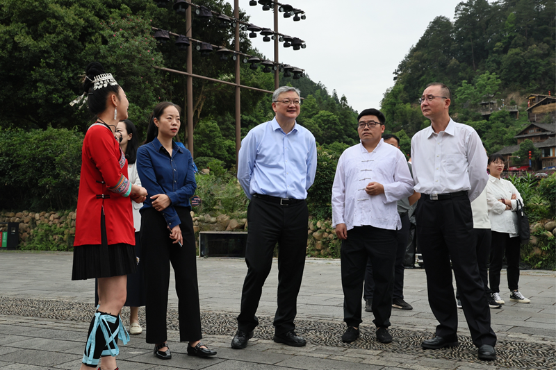 在黎平期間,王海民一行沿著總書記的考察路線,深入肇興侗寨調(diào)研侗族文化展示中心,侗鄉(xiāng)織、染、繡特色產(chǎn)業(yè)基地,集團幫扶項目侗族大歌研學基地,詳細了解民族文化傳承、鄉(xiāng)村旅游產(chǎn)業(yè)帶動和群眾受益增收等情況,并代表集團領導班子看望慰問掛職干部。
