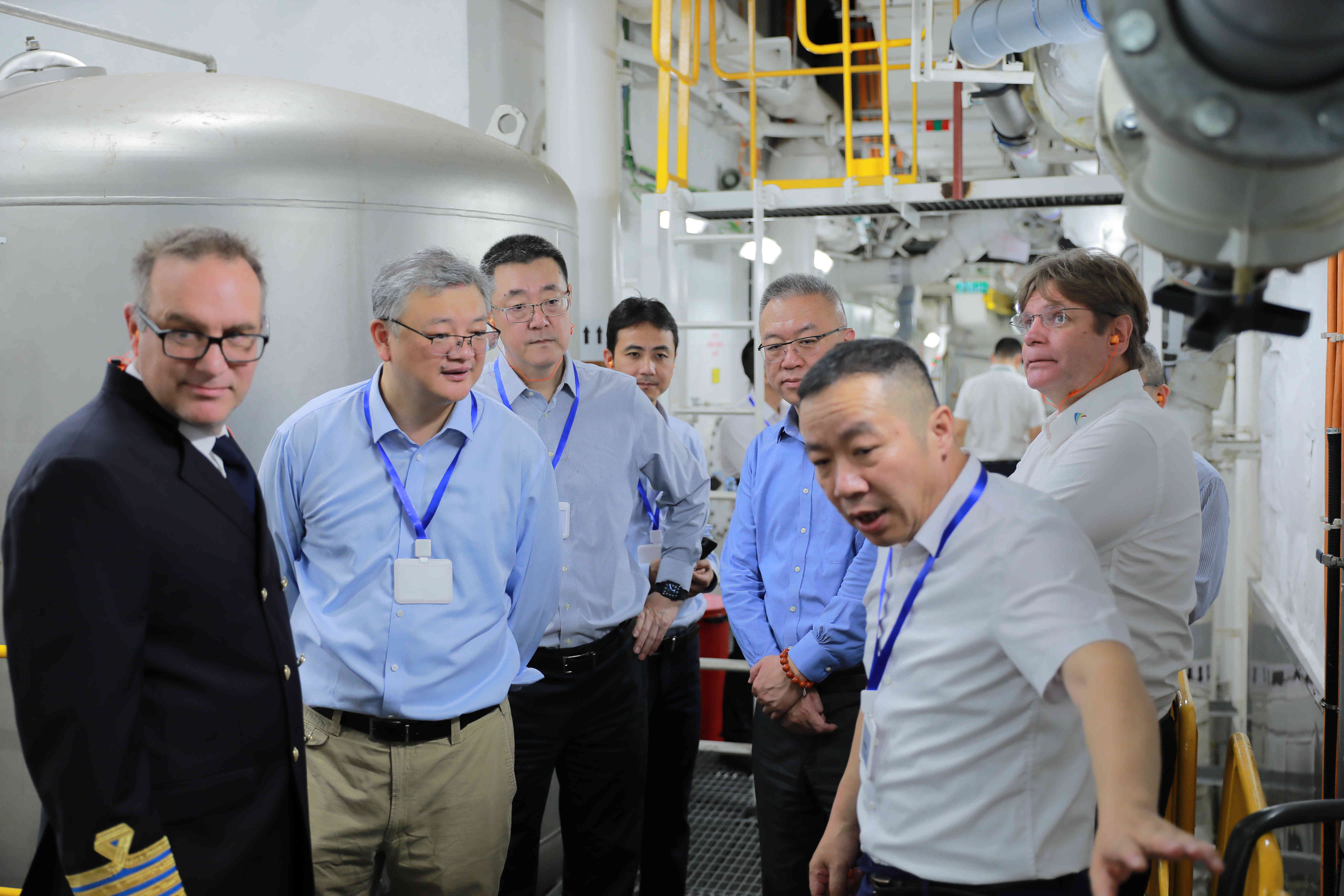 王海民充分肯定了船岸團(tuán)隊在船舶安全運(yùn)行、維護(hù)保養(yǎng)、客艙服務(wù)等方面所作的努力。在駕駛臺,王海民詳細(xì)了解雙節(jié)期間航行計劃、天氣情況、導(dǎo)航設(shè)備以及惡劣天氣應(yīng)急處置預(yù)案等情況。在集控室與機(jī)艙,實(shí)地檢查了設(shè)施設(shè)備維護(hù)保養(yǎng)等情況。在后廚,細(xì)致詢問廚房工作人員有關(guān)食材采購、操作流程以及食品安全等情況。調(diào)研期間,王海民與上海外高造船公司董事長陳剛、國家京劇院院長王勇分別就優(yōu)化郵輪安全管理體系、打造郵輪文旅融合產(chǎn)品等進(jìn)行交流。