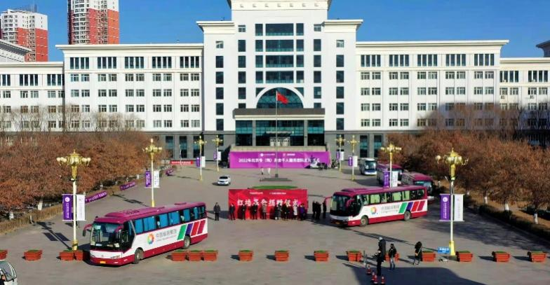 在出征儀式上,頒發(fā)紀念冊、授旗儀式等一系列現(xiàn)場活動過后,由承德市委有關(guān)領(lǐng)導(dǎo)宣布出征,參與儀式的領(lǐng)導(dǎo)和老師護送實習(xí)生們來到車前,目送同學(xué)們駛離學(xué)校。