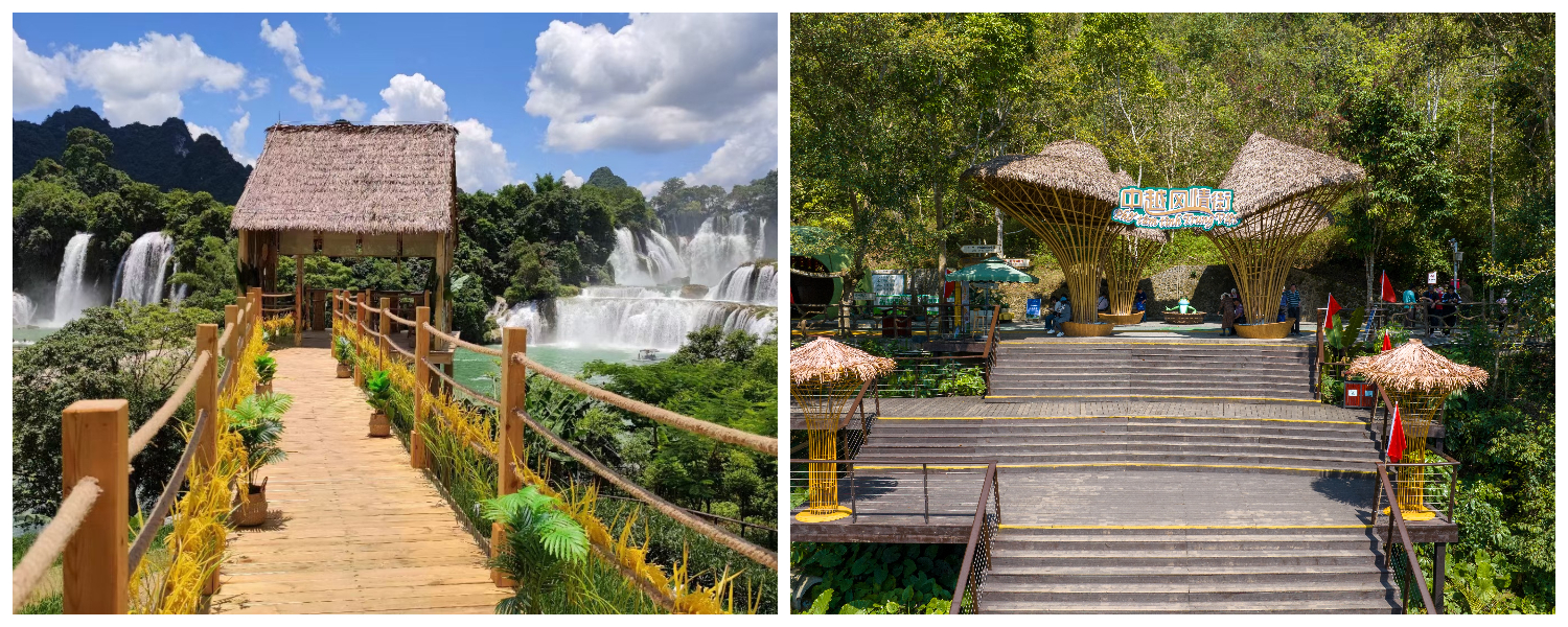 景區(qū)在堅持跨境與綠色旅游理念的基礎(chǔ)上,精心規(guī)劃了包括六大觀景平臺、觀瀑茶舍、中越跨境街以及中越風(fēng)情街在內(nèi)的多個特色文化觀景與體驗區(qū)域。這些區(qū)域不僅為游客提供了觀賞瀑布這一自然奇觀的絕佳視角,更搭建了一座深入理解和體驗中越文化交流的橋梁。
