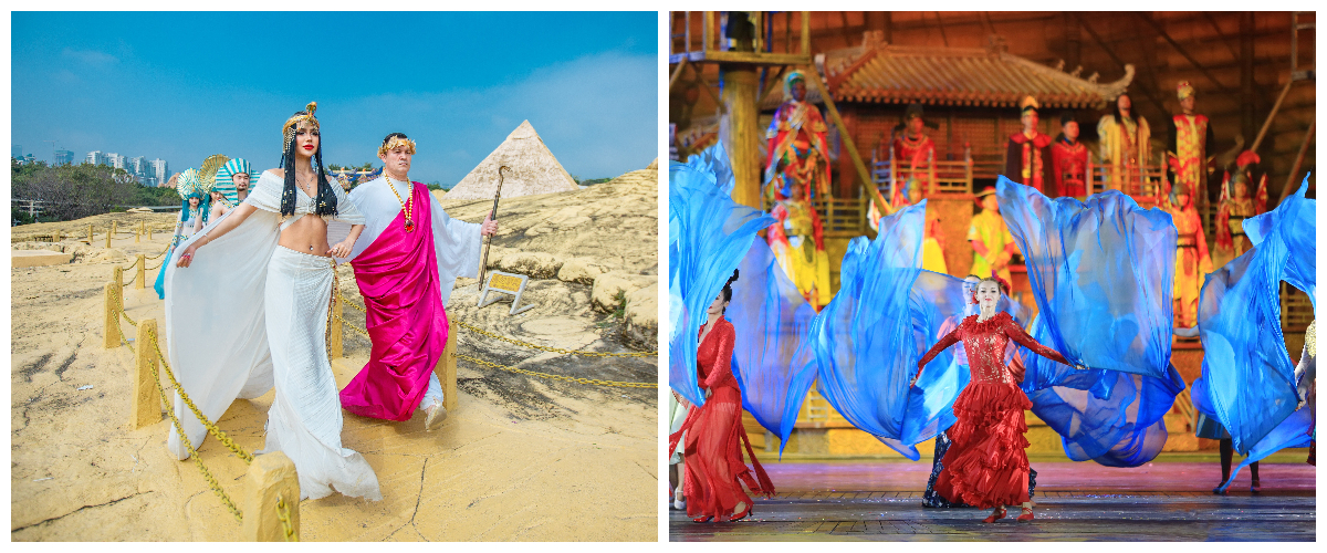 風(fēng)情演藝同樣精彩紛呈,為游客帶來(lái)沉浸式的世界文化體驗(yàn)?!冻霭<坝洝芬允吩?shī)敘事展現(xiàn)古埃及傳奇,《泰姬陵戀歌》演繹印度宮廷的異域浪漫,《火熱非洲》釋放原始狂野的激情,《大長(zhǎng)今》傳遞韓國(guó)的東方韻味……這些演出讓游客在游覽著名景觀的同時(shí),能更深入地感受全球多元文化的魅力。